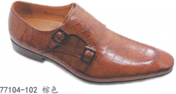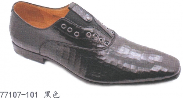 功能:一脚登压花皮鞋(鞋侧有金属扣)